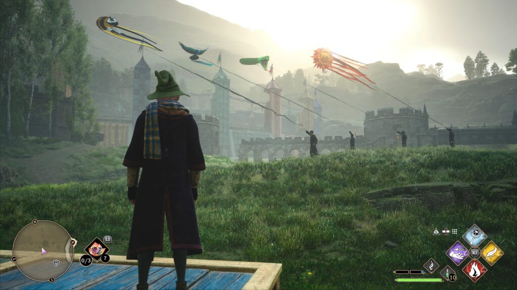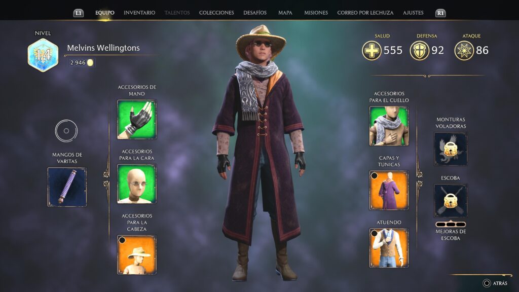 También disponemos de tareas asignadas por los profesores que nos permitirán desbloquear nuevas habilidades y hechizos. Con ellos, podremos avanzar en la historia principal o desbloquear zonas hasta entonces inaccesibles. Tendremos la opción de equiparnos con diversos objetos como sombreros, gafas, capas, guantes, varitas o bufandas, dando un aspecto único (y a veces un poco raro) a nuestro personaje.