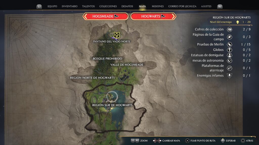 Creo que a muchos de vosotros os sorprenderá lo grande y variado que es el mapa, pudiendo visitar lugares míticos de la saga como el Bosque Prohibido o Hogsmeade, donde podremos encontrar diferentes tiendas para comprar y vender equipamiento como varitas, escobas voladoras o atuendos. La variedad de ambientes hace que queramos explorar cada rincón del mapa en un mundo cuyo clima va cambiando y va dando paso a las diferentes estaciones del año. Podremos usar los polvos Flu para teletransportarnos a través de los diferentes puntos de control que iremos desbloqueando, aunque os aseguro que en muchas ocasiones preferiréis no hacerlo para explorar más a fondo cada lugar.