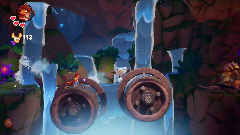 Hay montones de objetos por descubrir y coleccionables que recolectar, como luciérnagas dispersas por cada escenario (similares a las del bicho francés ese sin brazos ni piernas), monedas, llaves o letras -sí, como en el Monete Country-. Tocará vigilar los tres corazones rellenables, equivalentes al número de toques que resistiremos antes de perder una vida, pues si no calculamos el riesgo ante el premio posible, podemos acabar fácilmente en el punto de salvado anterior. Por fortuna, estos check-points son bastante generosos, con un puñado de ellos distribuidos por cada nivel para evitar frustraciones.