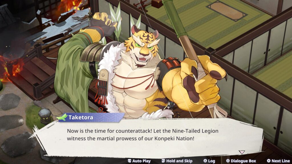 Al empezar, decidiremos con qué paladín queremos afrontar la aventura: Shigure (la joven enlaza todo, pero con diferente trasfondo o aptitud según protagonice o sea secundaria), Sara (una demonio desterrada) y Taketora (un renombrado general). Serán tres argumentos divergentes, pero sutilmente entrelazados, alrededor de la chica(s), que tratarán temas tan variopintos como la traición, reencarnación, honor, decepción o redención entre otros, de forma liviana pero interesantísima. Todo desde un prisma muy japo -numerosas referencias culturales a tradición y folclore local-, con algún toquecillo cómico incluso, y contado en escenas que irán surgiendo cuanto más avancemos en nuestra «run». Sí, esta palabrita implica que aquí hay mucho de «rogue-lite», recordando a cierto referente infernal en el género…