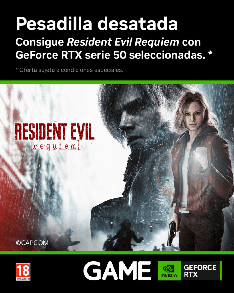 ¿Quieres disfrutar de Resident Evil Requiem con la máxima calidad? Hazte con una tarjeta gráfica NVIDIA GeForce RTX serie 50 (o un PC que la incluya) y podrás llevarte el juego de regalo, ¡la mejor forma de estrenar ordenador!